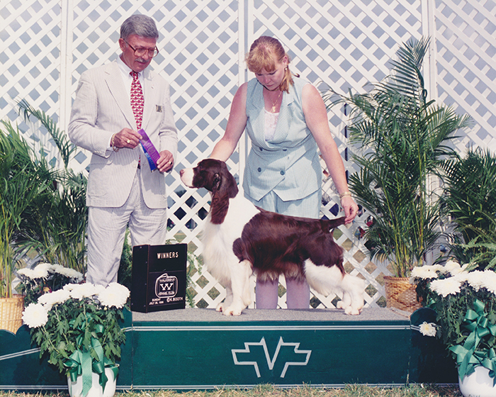 Riker played a very important part in our line of bitches. He is the sire of CH Telltale Indian Maid, CH Telltale Smoke Signal, CH Telltale Star Venture and CH Telltale Sunflower. Riker lived his retirement as the companion of an autistic child.